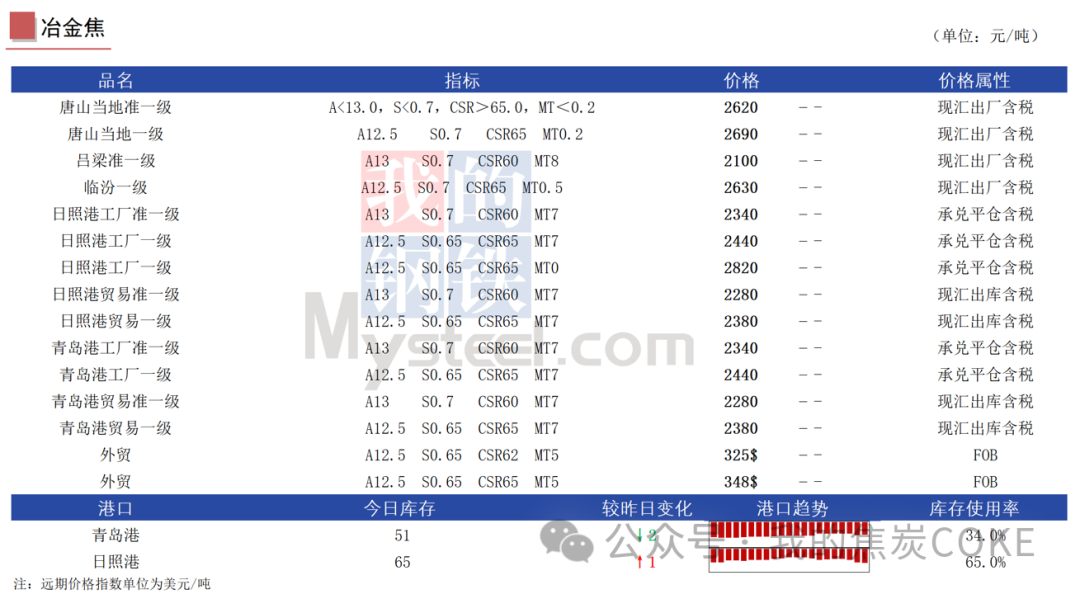 3、烏海市場焦炭價格暫穩(wěn),現(xiàn)二級冶金焦A<13.5、S0.8報1900元/噸,焦企地銷貿易商報1950元/噸,均為出廠價承兌含稅。